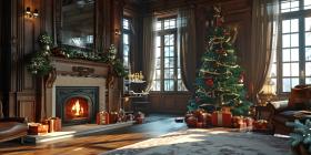 christmas fireplace tree celebration decoration gift winter december indoor house background holiday season living room interior home design festive decorated light new red present christmas tree merry candle year living room warm modern decor style traditional apartment no people photography window nobody holiday - event fire horizontal illuminated xmas cozy night color image evening christmas decorationSimilar Photos