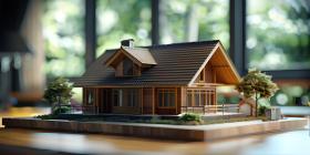 Miniature Houses on Table Background, Tabletop Model with Houses - Ai Generated