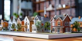 Miniature Houses on Table Background, Tabletop Model with Houses - Ai Generated