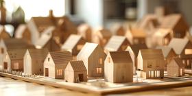 Miniature Houses on Table Background, Tabletop Model with Houses - Ai Generated