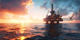 Offshore oil rig drilling platform at sunset Oil and gas platforms north sea background - Ai Generated