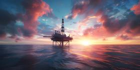 Offshore oil rig drilling platform at sunset Oil and gas platforms north sea background - Ai Generated