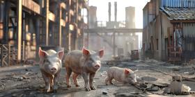 Industrial Farming: Pigs in Factory Setting, Livestock Facility: Pigs in Factory Environment - Ai Generated