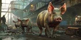 Industrial Farming: Pigs in Factory Setting, Livestock Facility: Pigs in Factory Environment - Ai Generated