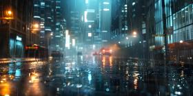 Urban Night Rain in the Big City, Cityscape during Rainy Night Background - Ai Generated