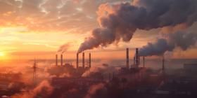 Industrial Landscape: Smoke Rising from Power Plant Chimneys, Factory Emissions: Billowing Smoke from Power Plant Chimneys - Ai Generated