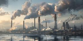 Industrial Landscape: Smoke Rising from Power Plant Chimneys, Factory Emissions: Billowing Smoke from Power Plant Chimneys - Ai Generated