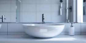 Modern Vessel Sink in White Bathroom Interior Background, Contemporary White Bathroom with Vessel Sink Interior - Ai Generated