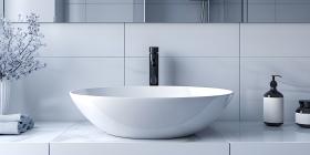 Modern Vessel Sink in White Bathroom Interior Background, Contemporary White Bathroom with Vessel Sink Interior - Ai Generated