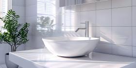 Modern Vessel Sink in White Bathroom Interior Background, Contemporary White Bathroom with Vessel Sink Interior - Ai Generated