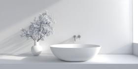 Modern Vessel Sink in White Bathroom Interior Background, Contemporary White Bathroom with Vessel Sink Interior - Ai Generated