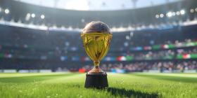 Cricket Stadium Background with World Cup Trophy, World Cup Trophy in Cricket Stadium - Ai Generated
