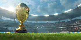 Cricket Stadium Background with World Cup Trophy, World Cup Trophy in Cricket Stadium - Ai Generated