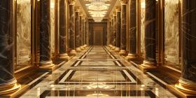 Gold marble interior of the royal golden palace castle interior background - Ai Generated