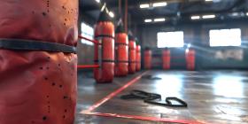 Blank Punching Bags in Boxing Gym background - Ai Generated
