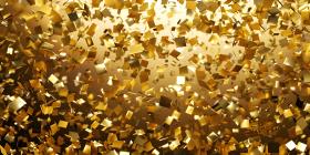 Glittering Golden Confetti Background, Shimmering Gold Confetti on Solid Surface - Ai Generated