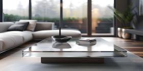Modern glass coffee table in a living room background - Ai Generated