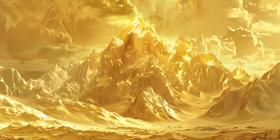 Golden Mountain Silhouette Background, Gilded Mountain Range Background - Ai Generated