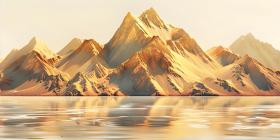 Golden Mountain Silhouette Background, Gilded Mountain Range Background - Ai Generated