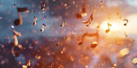 Musical Notes Soaring in Background, Fluttering Music Notes Background - Ai Generated