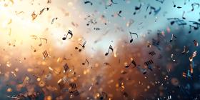 Musical Notes Soaring in Background, Fluttering Music Notes Background - Ai Generated