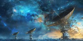 Satellite Dishes Receiving Signals from Outer Space background - Ai Generated