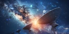 Satellite Dishes Receiving Signals from Outer Space background - Ai Generated