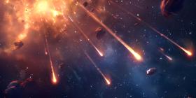 Set of Flying Meteors in space background - Ai Generated