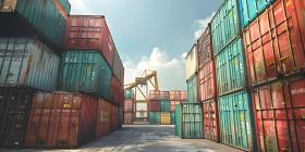 Stacked Cargo Containers in the Storage Area port background - Ai Generated