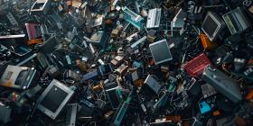 Pile of Discarded Electronics Background, E-Waste Dump Background - Ai Generated