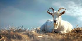 Eid ul Adha Goat resting on hay with copy space for text background - Ai Generated