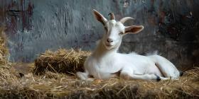 Eid ul Adha Goat resting on hay with copy space for text background - Ai Generated