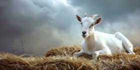 Eid ul Adha Goat resting on hay with copy space for text background - Ai Generated