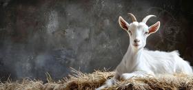 Eid ul Adha Goat resting on hay with copy space for text backgro
