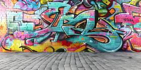 Colorful Graffiti on Wall Background, Background Featuring Colorful Graffiti on Wall - Ai Generated