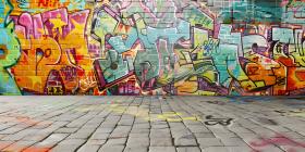 Colorful Graffiti on Wall Background, Background Featuring Colorful Graffiti on Wall - Ai Generated