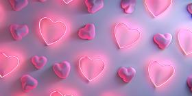 Neon pink hearts on white background - Ai Generated