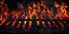 Barbecue Grill With Fire Flames background - Ai Generated