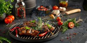 BBQ Grilled with Fresh Herbs and Spices background - Ai Generate