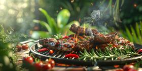BBQ Grilled with Fresh Herbs and Spices background - Ai Generate