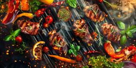 BBQ Grilled with Fresh Herbs and Spices background - Ai Generate