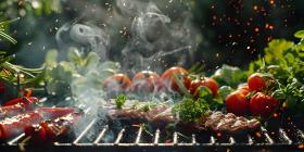 BBQ Grilled with Fresh Herbs and Spices background - Ai Generate