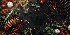 BBQ Grilled with Fresh Herbs and Spices background - Ai Generate