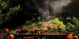 BBQ Grilled with Fresh Herbs and Spices background - Ai Generate