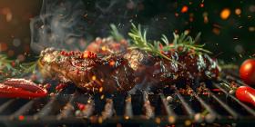 BBQ Grilled with Fresh Herbs and Spices background - Ai Generate
