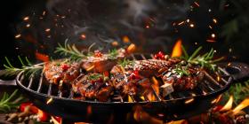 BBQ Grilled with Fresh Herbs and Spices background - Ai Generate