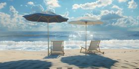 Beach umbrella with chairs on the sand summer vacation concept b