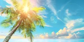 Beautiful Coconut Palm tree with blue sky and sun background - A