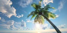 Beautiful Coconut Palm tree with blue sky and sun background - A