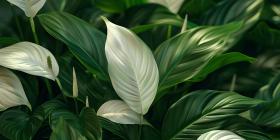 Beautiful leaves of Spathiphyllum cannifolium in the garden back